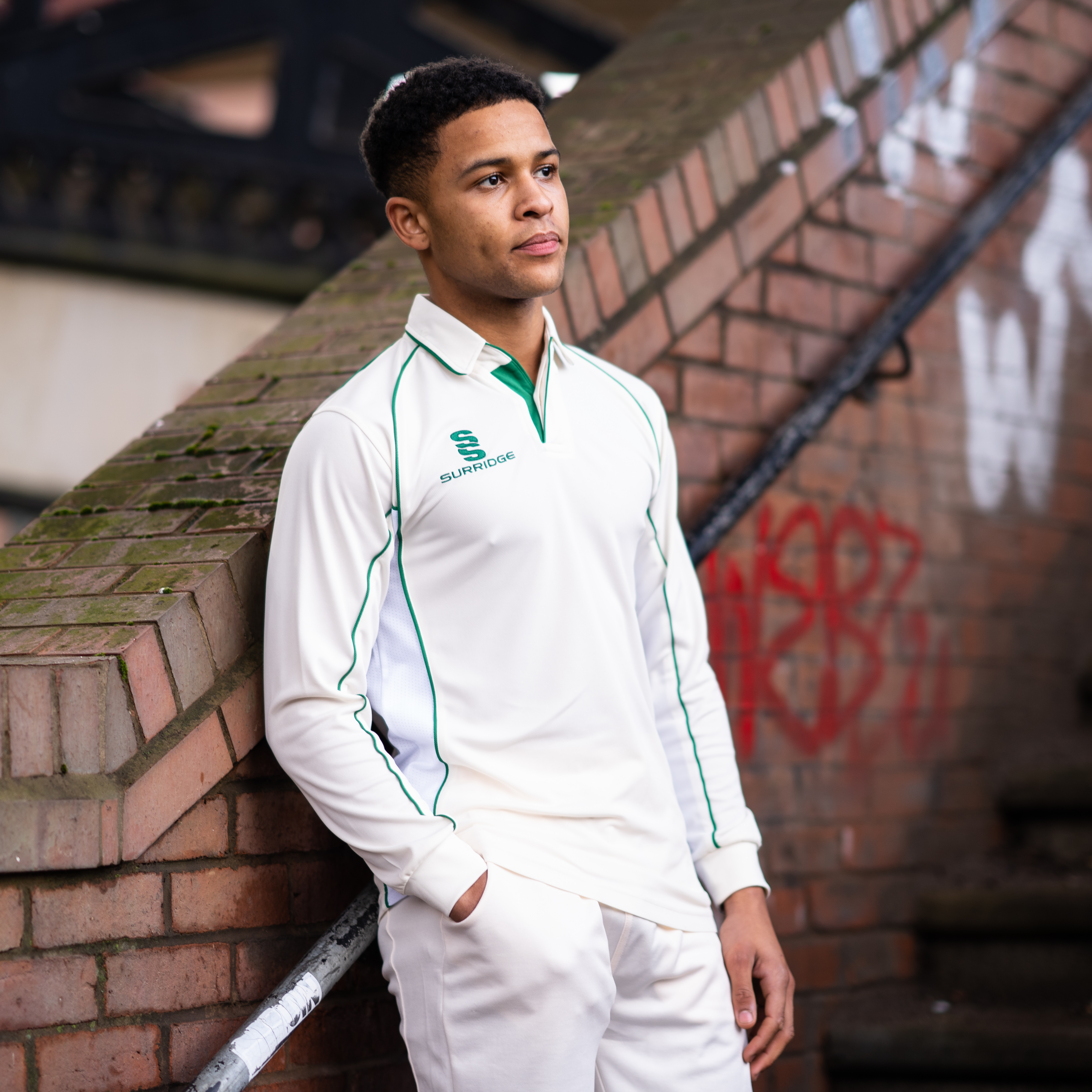 Ashbourne CC Premier Long Sleeve Green Trim Shirt