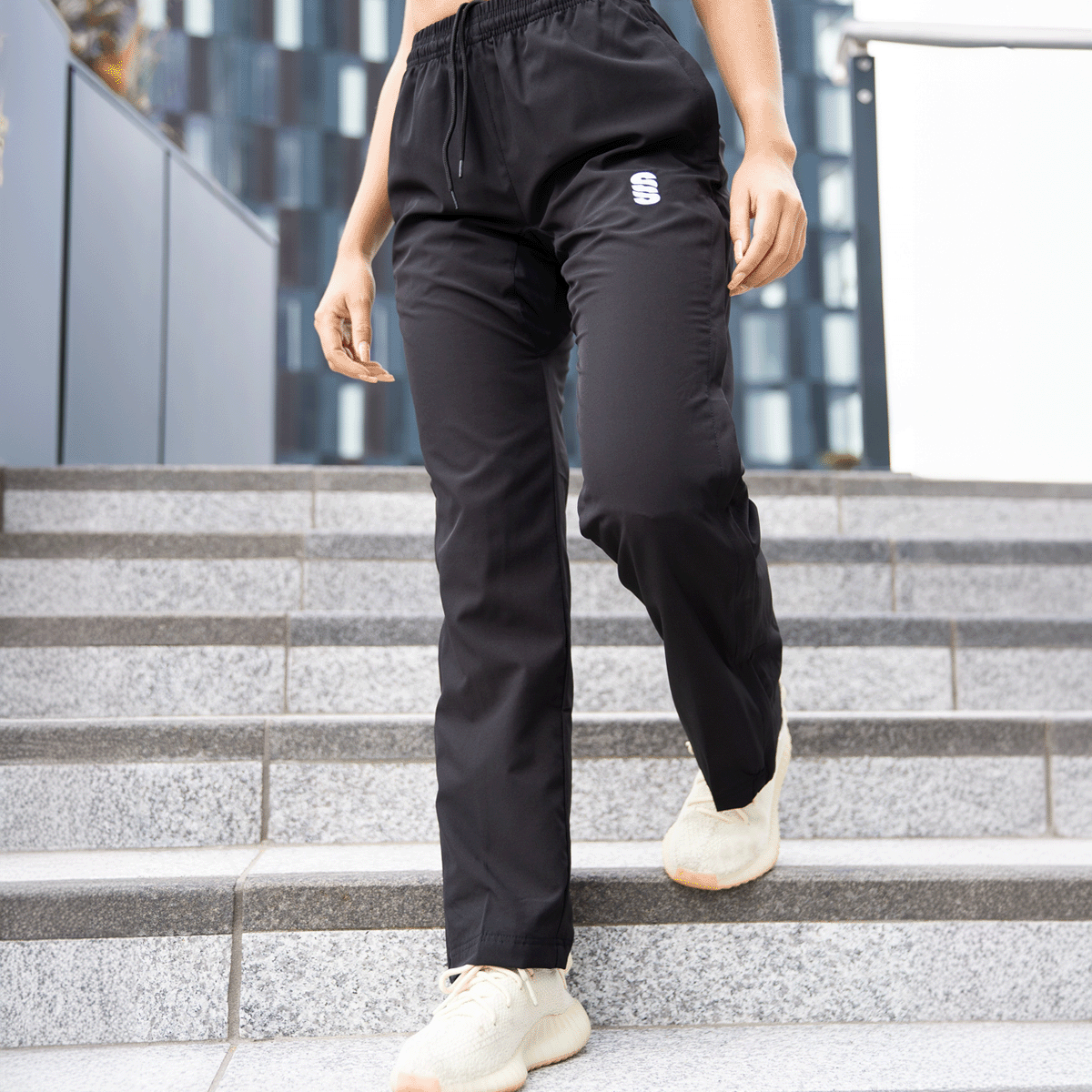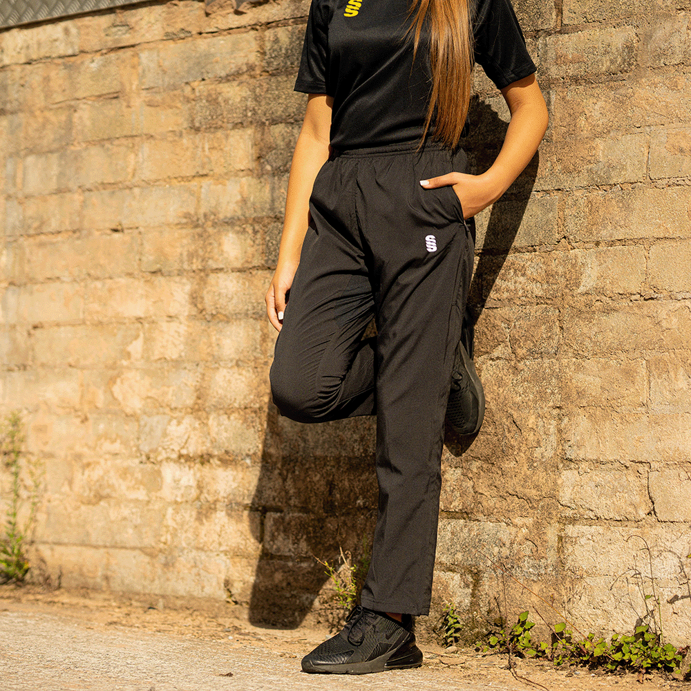 Straight leg trousers with 3/4 length side zip. 2 zipepd pockets and cotton feel lining.